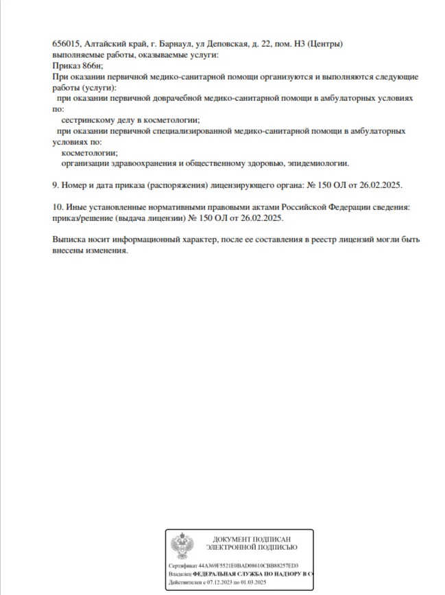Лицензия № Л041−1 151−22/1 918 976 от 26.02.2025 года.